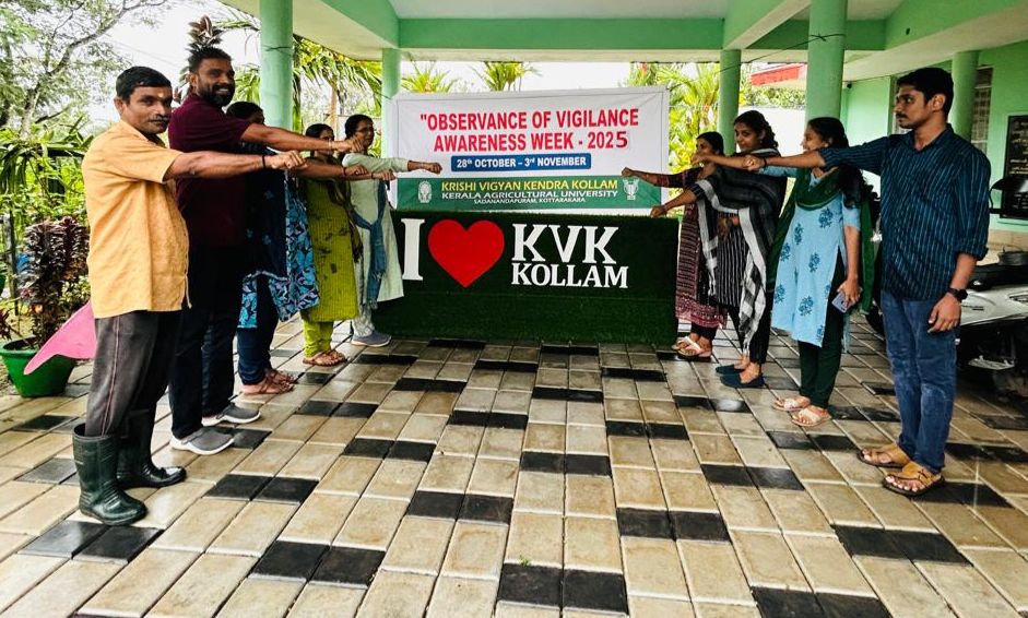 KVK Kollam planted sapling of Kera Sree hybrid Coconut seedling in KVK farm following the proper protocols and social distancing norms. A total of 10 KVK staff participated in the event.